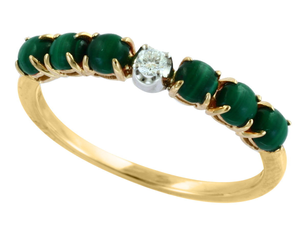 EFFY 14 KARAT TWO TONE RING DIAMOND AND MALACHITE. THE DIAMONDS ARE 0 .04 CARAT TOTAL WEIGHT AND THE MALACHITE IS 0.95 CARAT IN TOTAL WEIGHT.