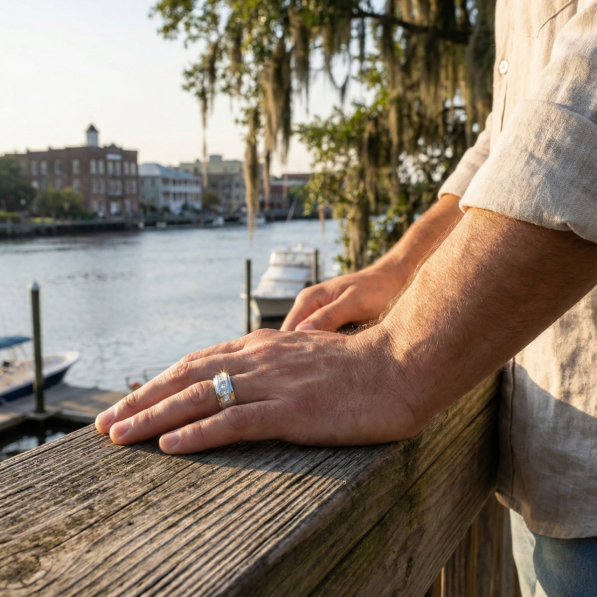 Clean with mild soap and a soft brush. Avoid harsh chemicals and store separately to maintain brilliance and protect settings.