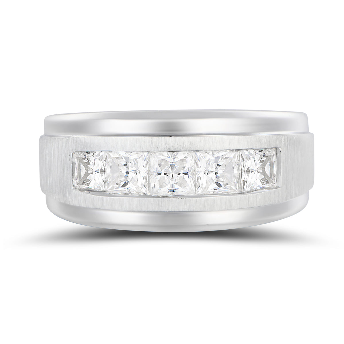 Bold and modern, this 14K white gold 5-stone ring showcases 2.00 carats total weight of princess cut lab-grown diamonds in a sleek channel setting. The clean lines and structured profile create a sophisticated look with exceptional brilliance and contemporary appeal.