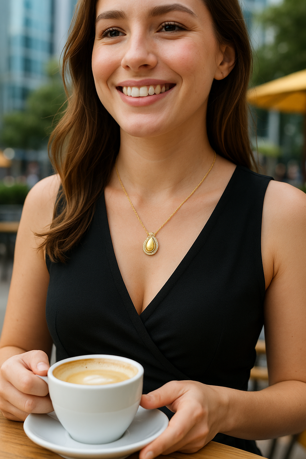 10K Yellow Gold Pear-Shape Diamond Halo Pendant – 1/10ct Elegant and easy to wear, this 10K yellow gold pear-shaped pendant shines with a polished gold center framed by a sparkling 1/10ct diamond halo. The teardrop silhouette offers a timeless, feminine look, while the round brilliant diamonds add eye-catching fire and sparkle. Perfect for gifting or everyday elegance. Details: 10K yellow gold Pear-shape polished center 1/10 carat total weight of round brilliant diamonds Classic halo design for added radiance Includes matching chain