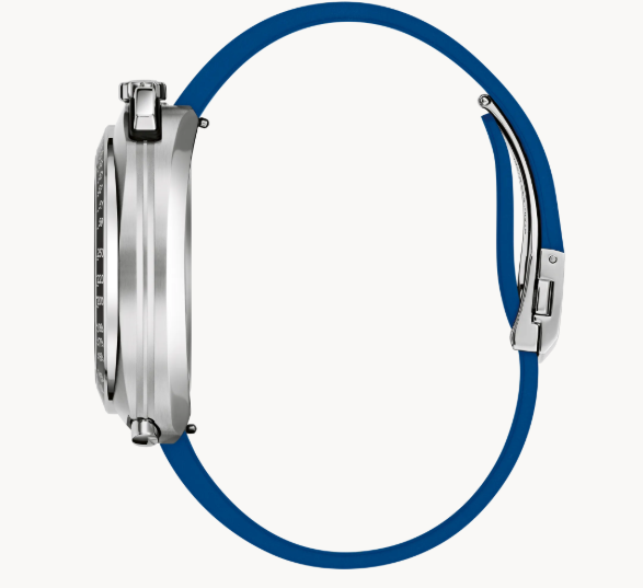 Experience the thrill of speed, right on your wrist. As part of a new collaboration for Bulova’s 150th Anniversary, the new limited-edition Bulova Racing Chronograph combines legendary muscle car customizer Carroll Shelby’s trailblazing racing style with Bulova’s innovative watchmaking technology. Shelby’s signature blue and white colorway is on full display, striping the rubber strap, accenting the dial, and elevating the 43mm silver-tone stainless steel case. Inspired by the massive power of the 1967 Shelby Ford Mustang GT500, the angular bullhead case offers a dramatic presence on the wrist, recalling the aerodynamic lines of that iconic car and including a black tachymeter ring, sapphire crystal, 12 o’clock crown and pushers, and a grooved mid-case echoing the car’s racing stripes. With the Shelby Cobra logo nestled in the 3 o’clock register, the dial roars to life with 8-hand chronograph functionality including timing to an astonishing 1/1000 second, powered by Bulova’s proprietary high precision quartz Precisionist movement , resonating at a frequency of 262khz for unparalleled accuracy and allowing a sweeping chronograph hand. With an individually numbered polished case back bearing Shelby’s signature and delivered in a limited-edition box with a 1:24 die-cast model of the GT500, the new Racing Chronograph brings the power of Shelby’s creations to your wrist for unparalleled style. Limited to 7,500 pieces worldwide.