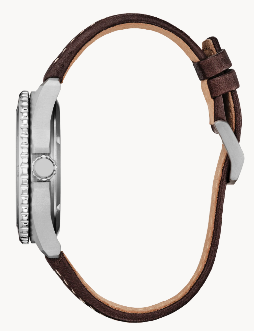 Take action and show your inner drive with the sporty styling of the Brycen, the latest addition to the Weekender collection. Featuring a silver-tone Super Titanium™ case with a brushed finish, the 41mm timepiece is durable in form and function with its matching bi-directional rotating bezel and triple-link bracelet. On the sunray blue dial, highly legible timekeeping elements are at work, with a yellow seconds counter providing a pop of color and a 3 o'clock date window providing daily utility. Featuring our proprietary Eco-Drive technology – powered by light, any light. Never needs a battery. Caliber number J810.