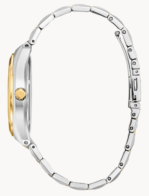 Citizen Corso A classic timepiece is always in style in the Corso men’s watch from Citizen. Featuring a two-tone gold and silver-tone stainless steel bracelet and case with a 3-hand white dial and date indicator, luminous hands and gold-tone markers, this elegant timepiece also features a fold-over clasp closure with hidden push buttons and is water resistant to 100 meters. If you’re looking for a dress watch to add classic style to your wardrobe, look no further – the Corso is the perfect choice. It also uses Citizen’s Eco-Drive technology, so it is sustainably powered by any light and will never need a battery. Caliber number E111.