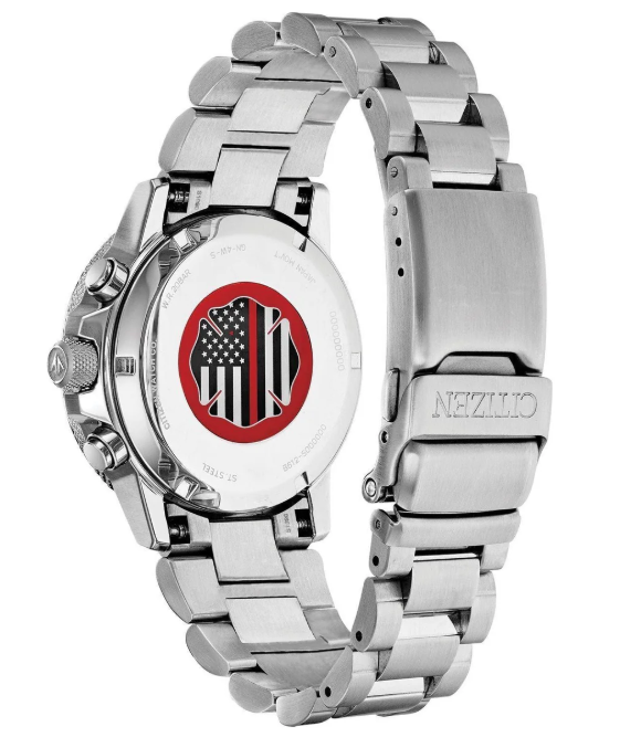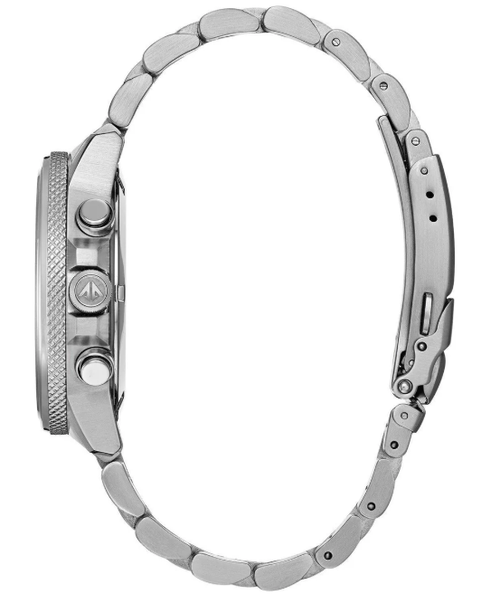 This Stainless Steel Nighthawk Chronograph features a 200 meter water resistance and tachymeter scale.