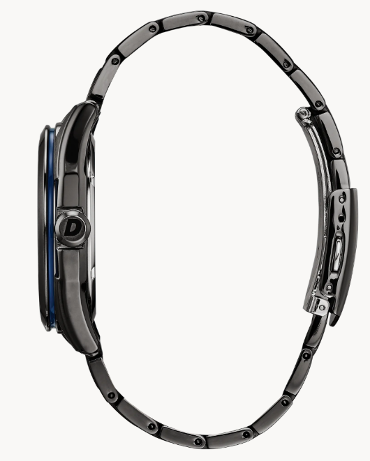 Citizen Sport Casual An edgy structure in a classic setting, this Drive from Citizen WDR watch features a deep gray ion-plated stainless steel case and bracelet with a denim blue dial and date. Featuring our Eco-Drive technology – powered by light, any light. Never needs a battery. Caliber number J810.