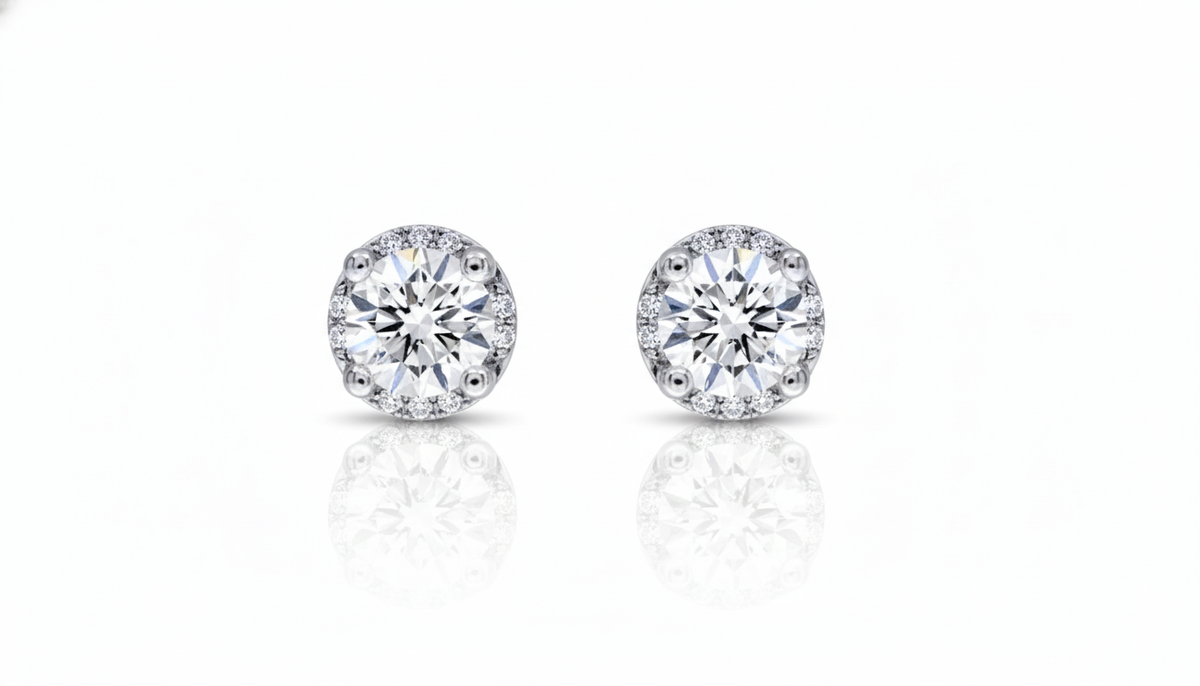 10K White Gold 1ct Total Weight Diamond Hidden Halo Stud Earrings Classic brilliance with a modern twist. These 10K white gold diamond studs feature a round center diamond wrapped in a shimmering hidden halo, adding extra sparkle from every angle. Totaling 1.00 carat, this elevated stud design delivers elegant shine in a perfectly wearable everyday size. A sophisticated upgrade to the traditional diamond stud.