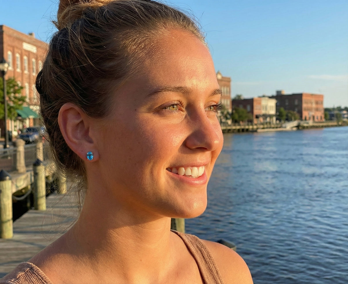 Introducing the Brownlee 14K White Gold Oval Blue Topaz Stud Earrings, a timeless essential designed for effortless everyday elegance. Each earring features a vibrant 7×5 mm oval blue topaz secured in a classic four-prong setting, offering brilliant color, clean lines, and a lightweight feel that’s comfortable from morning to night. Crafted in polished 14K white gold with secure push-back closures, these studs deliver versatile style that transitions seamlessly from casual wear to special occasions.