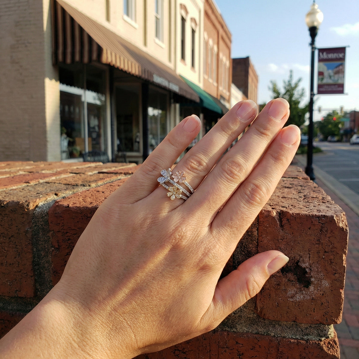 Floral diamond clusters create eye-catching brilliance from every angle.