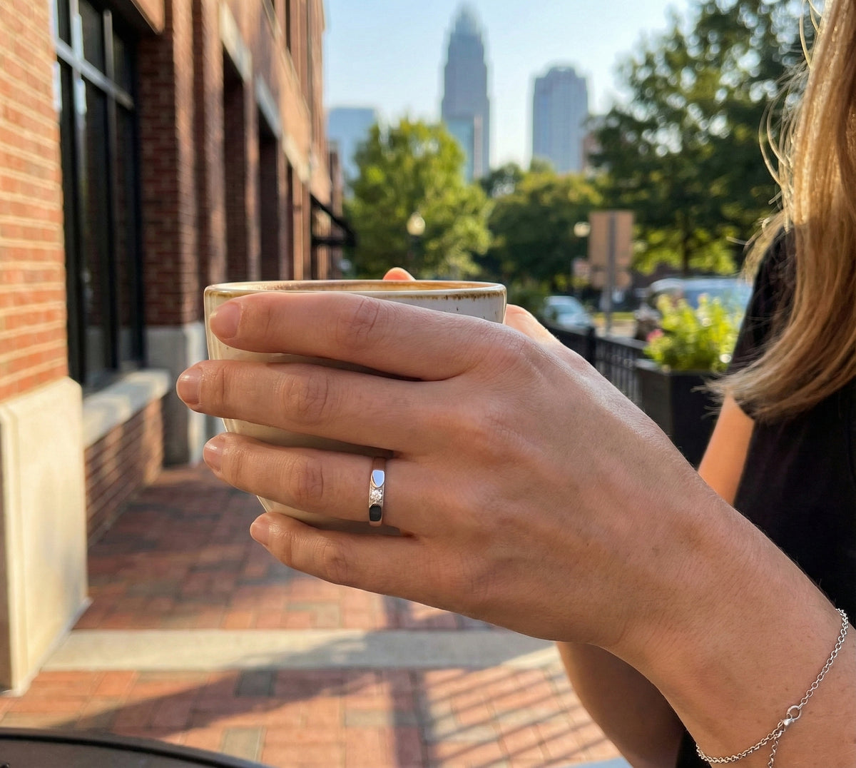 Clean with a soft brush and mild jewelry cleaner. Avoid harsh chemicals and store separately to maintain brilliance and protect settings.