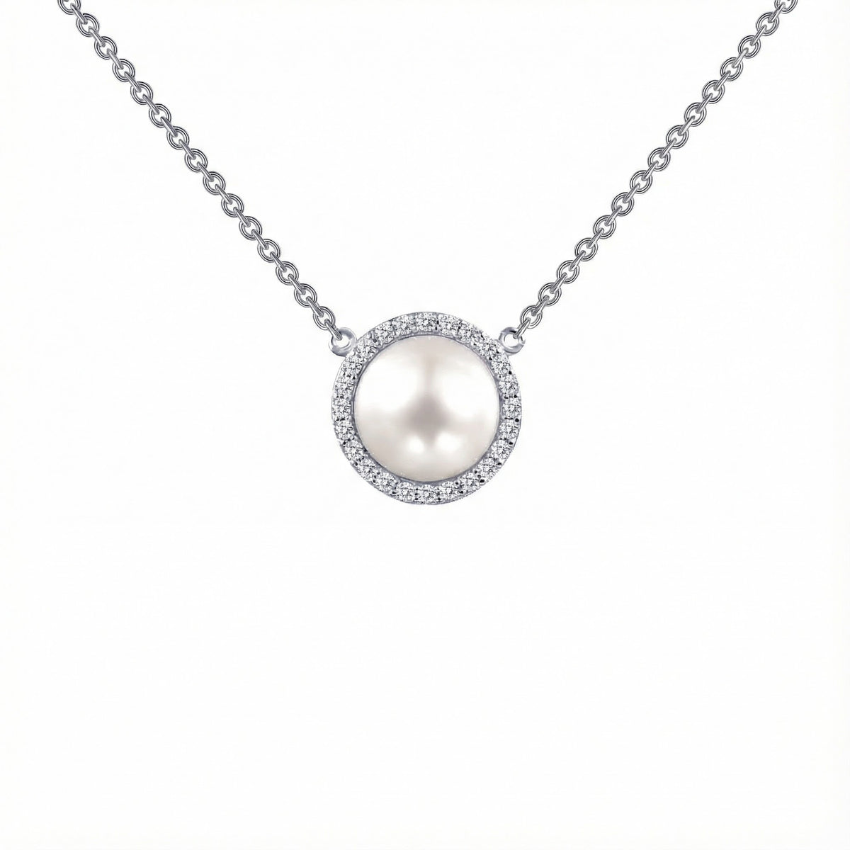 Elegant and timeless, this Lafonn Freshwater Cultured Pearl Halo Pendant features a luminous round pearl framed by a sparkling halo of round cubic zirconia. Set in polished sterling silver and suspended from an 18-inch chain, this classic design delivers refined sophistication for everyday wear or special occasions.