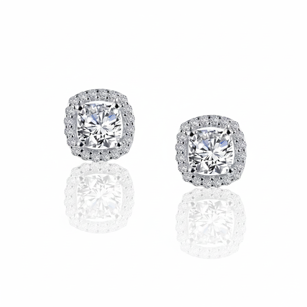 Cushion-Cut Halo Stud Earrings – Lassaire® Simulated Diamonds