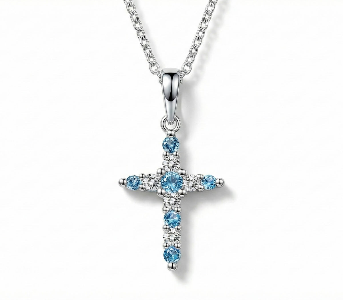 Blue Topaz & CZ Cross Pendant | Sterling Silver | Faith Necklace
