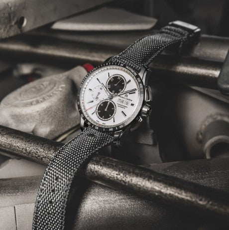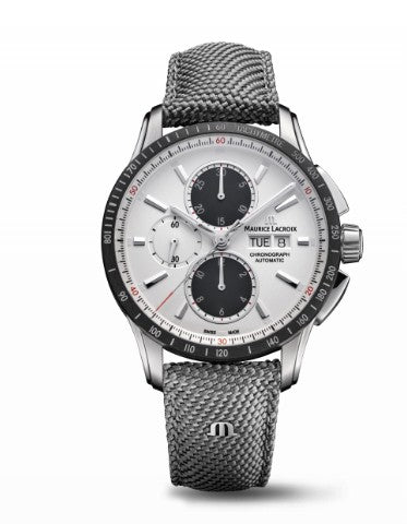 STAINLESS STEEL AUTOMATIC CHRONOGRAPH WATCH MAURICE LACROIX GREY STRAP WITH SKELETON BACK