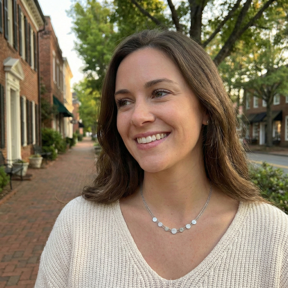 Diamond Pavé Circle Station Necklace | 14K White Gold | 0.16 ctw | Modern Disc Necklace