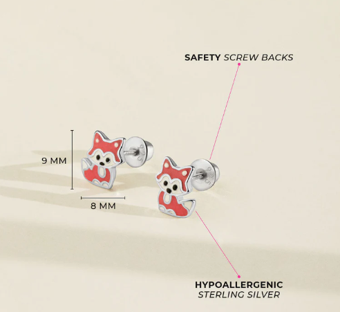 KIDS SCREW BACK EARRINGS RED FOX