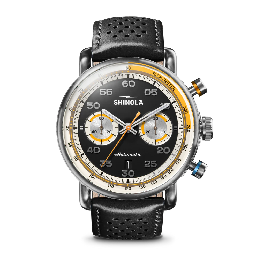 SHINOLA WATCH LEATHER STRAP CANFIELD SPEEDWAY OPEN ROAD AUTOMATIC