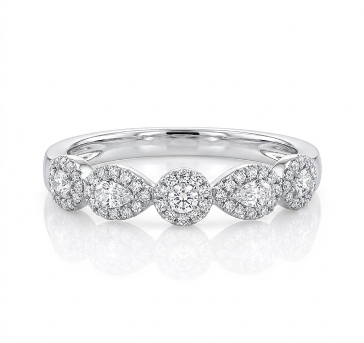 Design: Alternating Pear & Round Diamond Clusters –