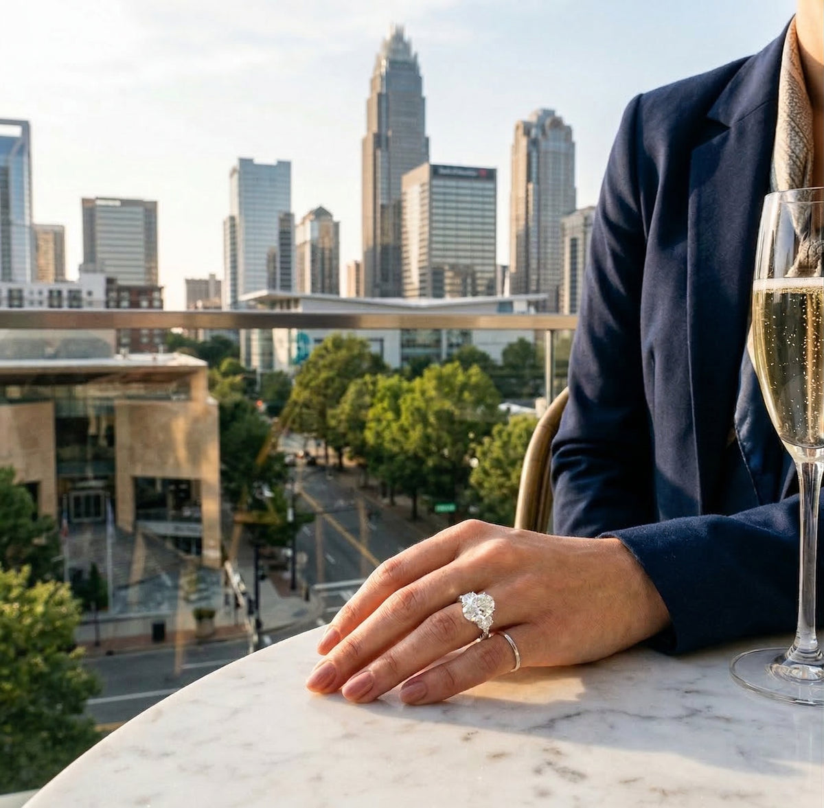 Side Stones: Half-Moon Diamonds with Round Diamond Accents