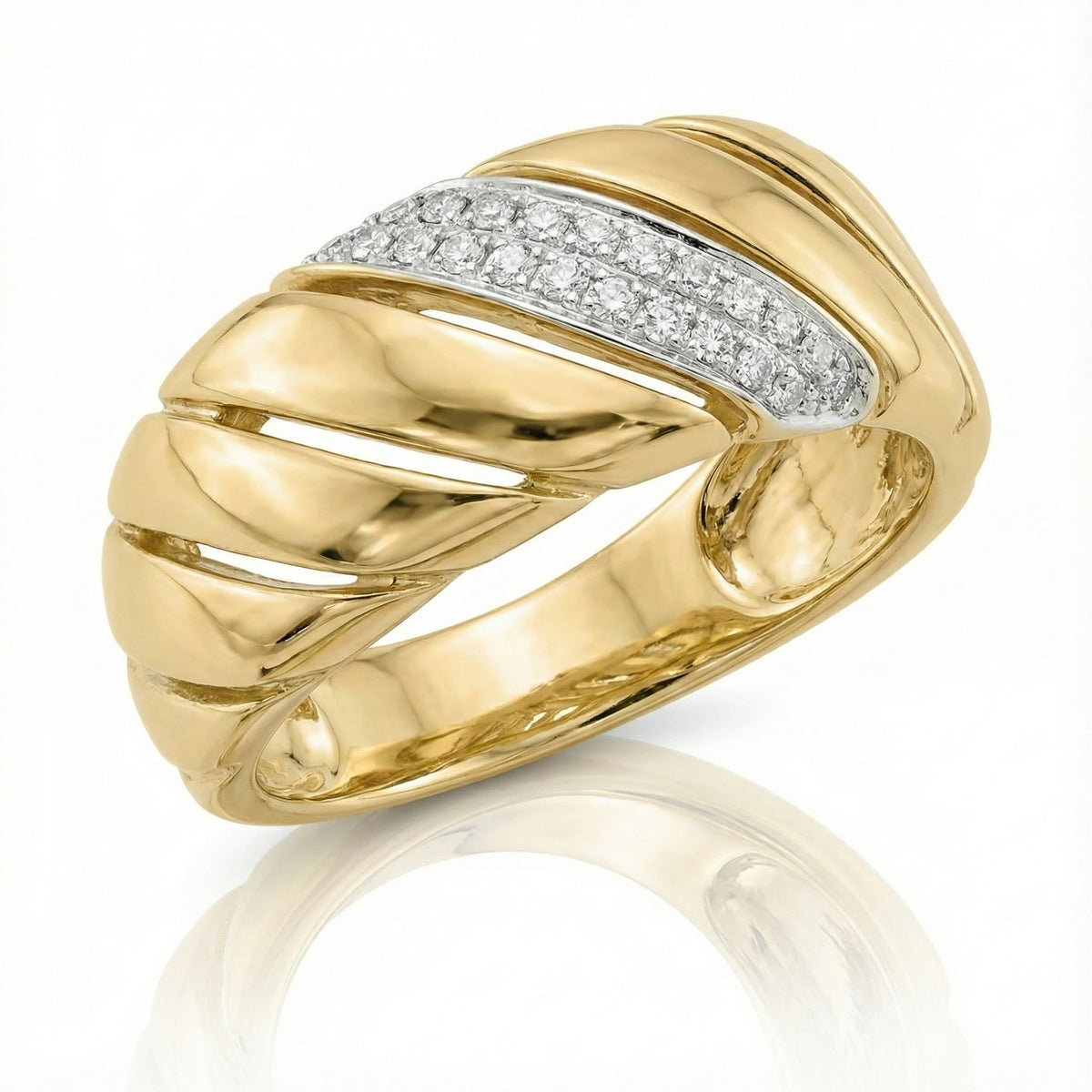 Le Vian® 14K Honey Gold™ Vanilla Diamond® Swirl Ring (0.15ctw) Sleek, sculptural, and effortlessly elegant—this Le Vian® ring features 1/6 cts. of shimmering Vanilla Diamonds® set within a polished, flowing swirl of 14K Honey Gold™ 6392547287
