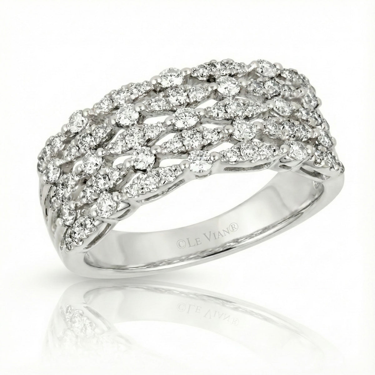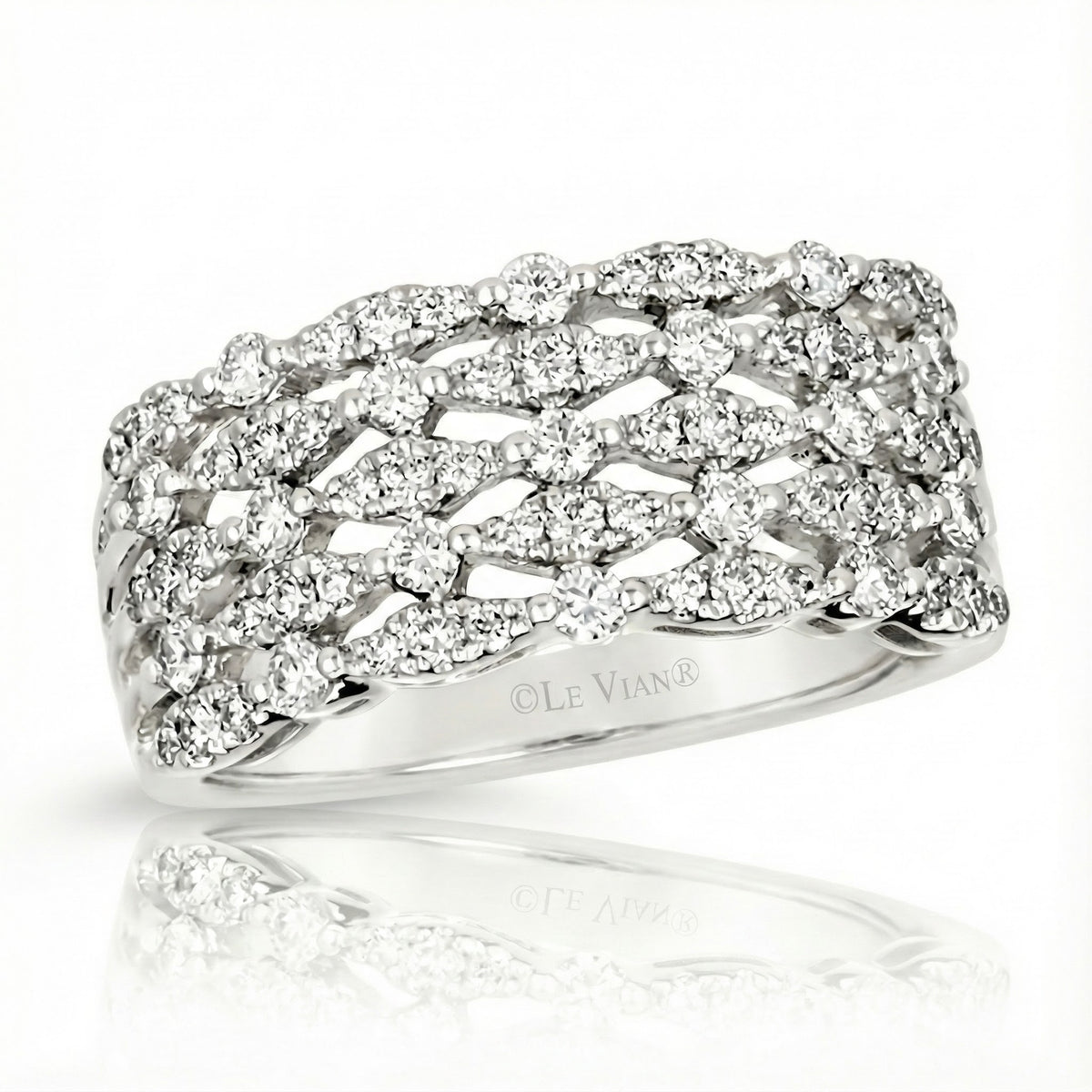 Platinum Le Vian® 5-Row Round Diamond Ring – 1/2ctw This stunning Le Vian® design features five rows of shimmering round diamonds woven into an elegant lattice pattern, all crafted in luxurious platinum 2364831024