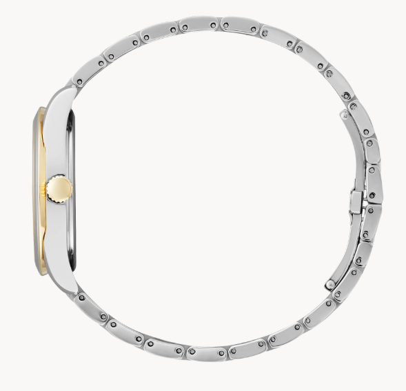 Citizen Arezzo From the 32mm two-tone stainless-steel case to the two-tone bracelet with a deployment clasp, the Arezzo from Citizen marries elegant style with sporty function. It has a white three-hand dial with Roman numerals, is accented with diamonds and uses Eco-Drive technology, so it is powered by any light, never needing a new battery.