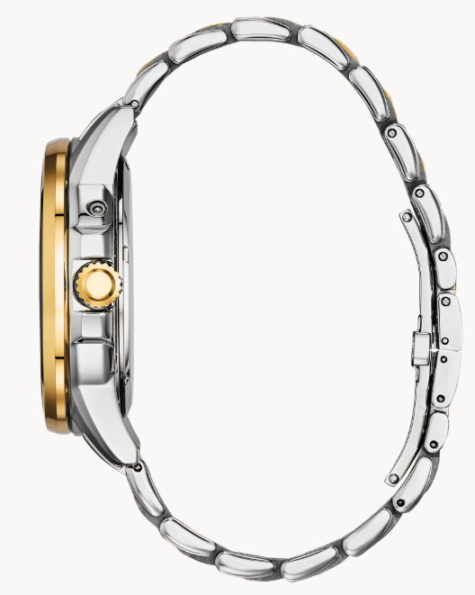 Bring sophistication to your day with the new CITIZEN Calendrier Moonphase, powered by any light with Eco-Drive. This timeless watch features analog month/day/date. Men's watch featured with two-tone stainless steel case and bracelet with cobalt blue dial. Featuring our Eco-Drive technology – powered by light, any light. Never needs a battery. Caliber number 8730.