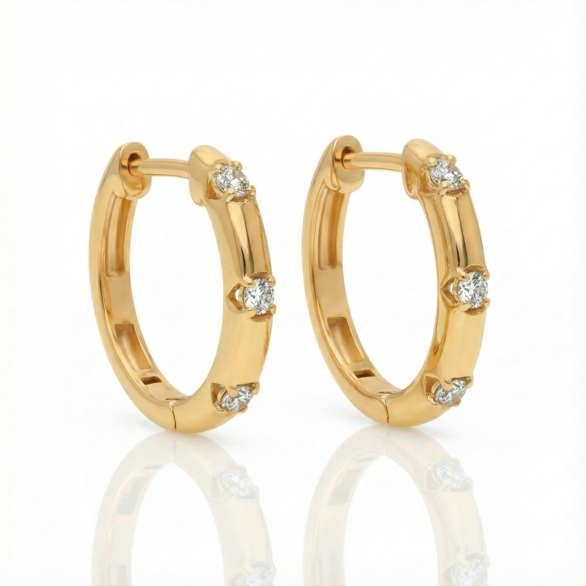 Style: Slim huggie with diamond accents