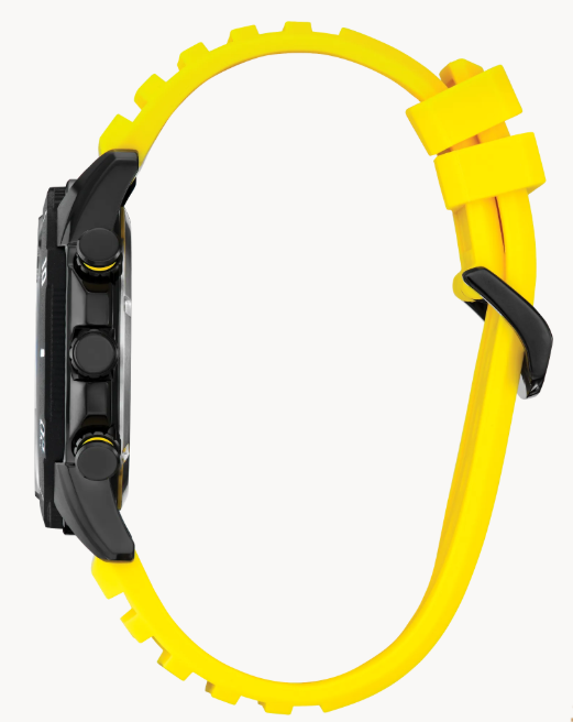 Citizen Brycen Bold and sporty, the Brycen chronograph is ready for any adventure. The watch wears boldly at 44.8mm, with a black-tone stainless steel case accented with yellow details on its racing-style pushers. A rotating 60-minute bezel adds to its functionality, while a durable yellow silicone strap secures the timepiece to the wrist. On the dial, the sporty styling continues, with lume-filled, highly legible hour markers anchoring the look, while a yellow tachymetric scale outlines the display. Advanced functions include a 1-second chronograph measuring up to 60 minutes, 12/24 hour time, and a date indicator at the 4 o'clock position. The men’s high-performance Brycen is sustainably powered by any light with Citizen's proprietary Eco-Drive technology that never needs a battery. Water resistant up to 100 meters. Caliber H500.